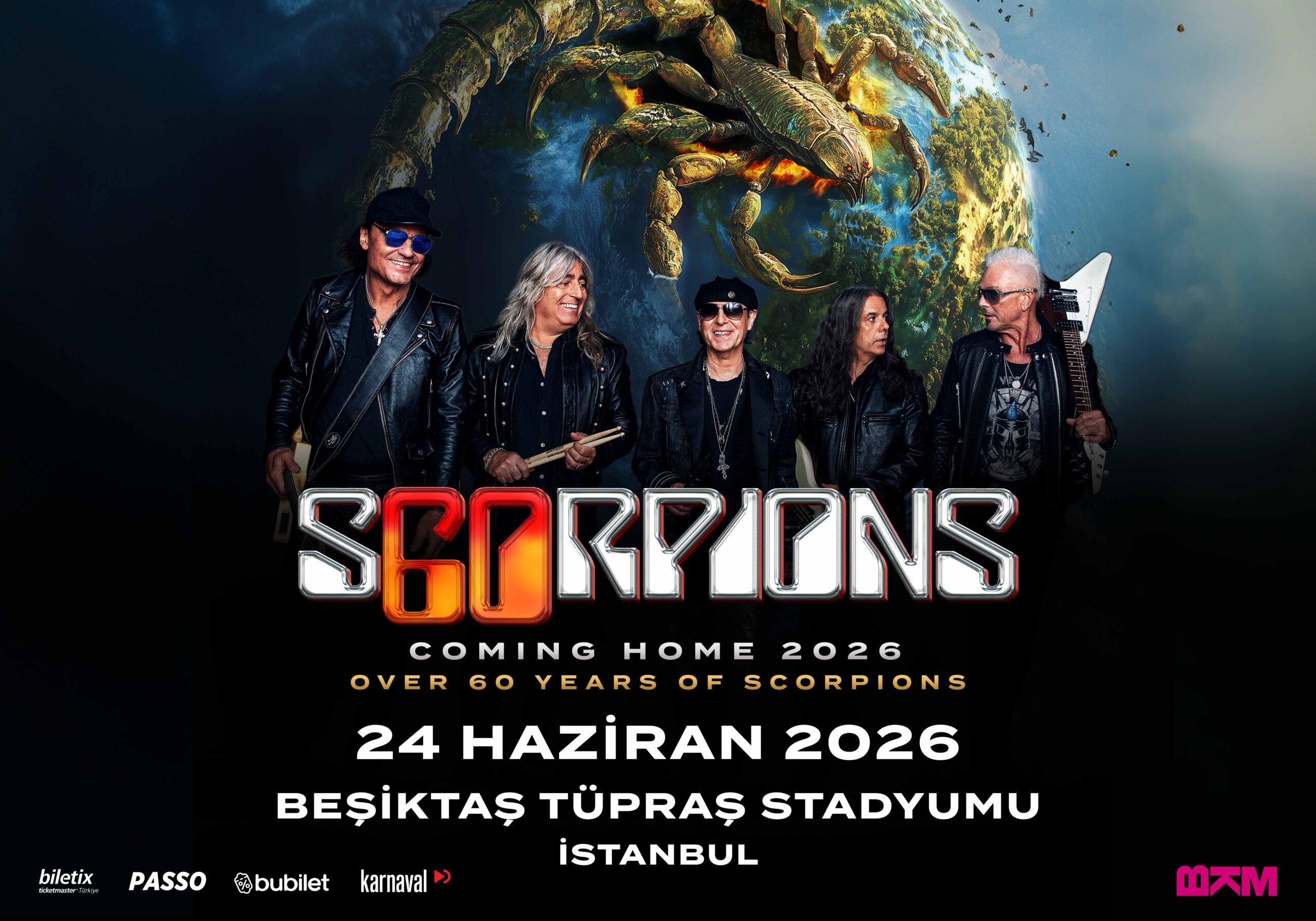 Coming Home — 60 Years of Scorpions turnesi kapsamında gerçekleşecek İstanbul konseri, grubun altmış yıllık sahne mirasını dev stadyum prodüksiyonu ve yüksek enerjisiyle Beşiktaş Tüpraş Stadyumu’na taşıyacak.