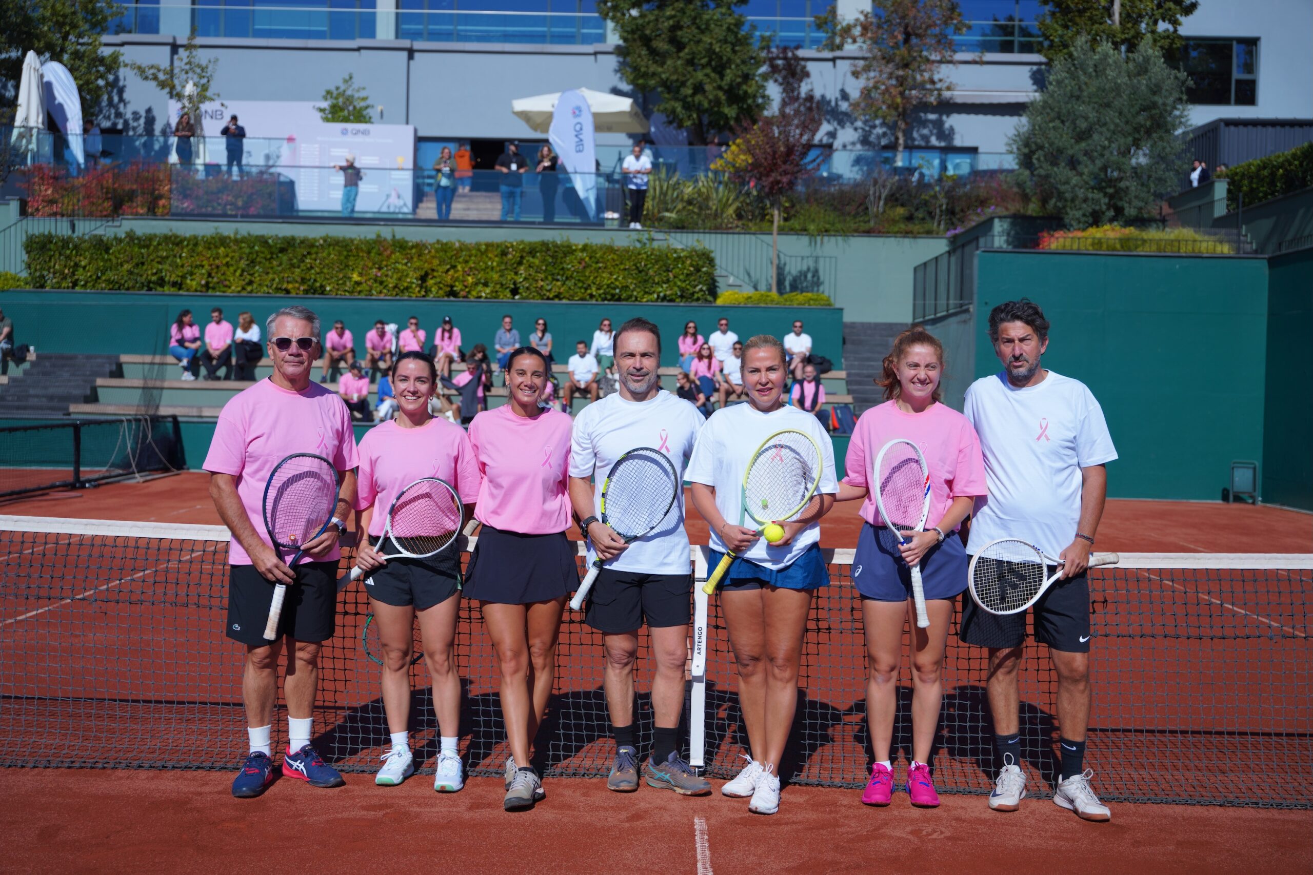 ‘Meme Kanseri Bilinçlendirme ve Farkındalık Ayı’ kapsamında düzenlenen ‘Pembe Top Tenis Turnuvası’, QNB Türkiye Yönetim Kurulu Başkanı Ömer Aras, QNB Türkiye Genel Müdürü Ömür Tan ve banka çalışanlarının katılımıyla Inventist Tenis Akademisi’nde gerçekleşti. Turnuvanın açılışında bir dönem QNB Türkiye’de görev yapan Elif Yavaş ve meme kanseri nedeniyle hayatını kaybeden tüm kadınlar saygıyla anıldı. Elif’in adı ve mücadelesi, kortlarda bir kez daha hatırlatıldı. Aynı zamanda hastalığı atlatan ve halen mücadele eden kadınlara destek mesajı verildi.